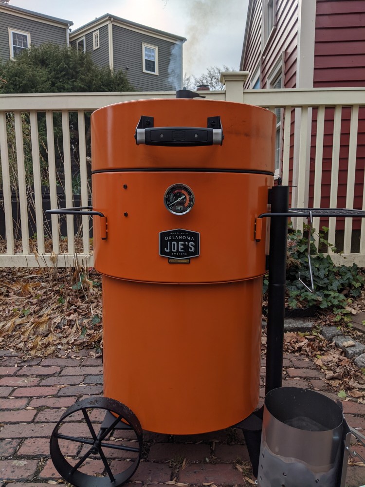 A huge thank you to everyone who’s been enjoying my bacon! Because of your generosity I’ve upgraded to a new, larger smoker – the Bronco Pro from Oklahoma Joe (in Dukes of Hazzard orange):